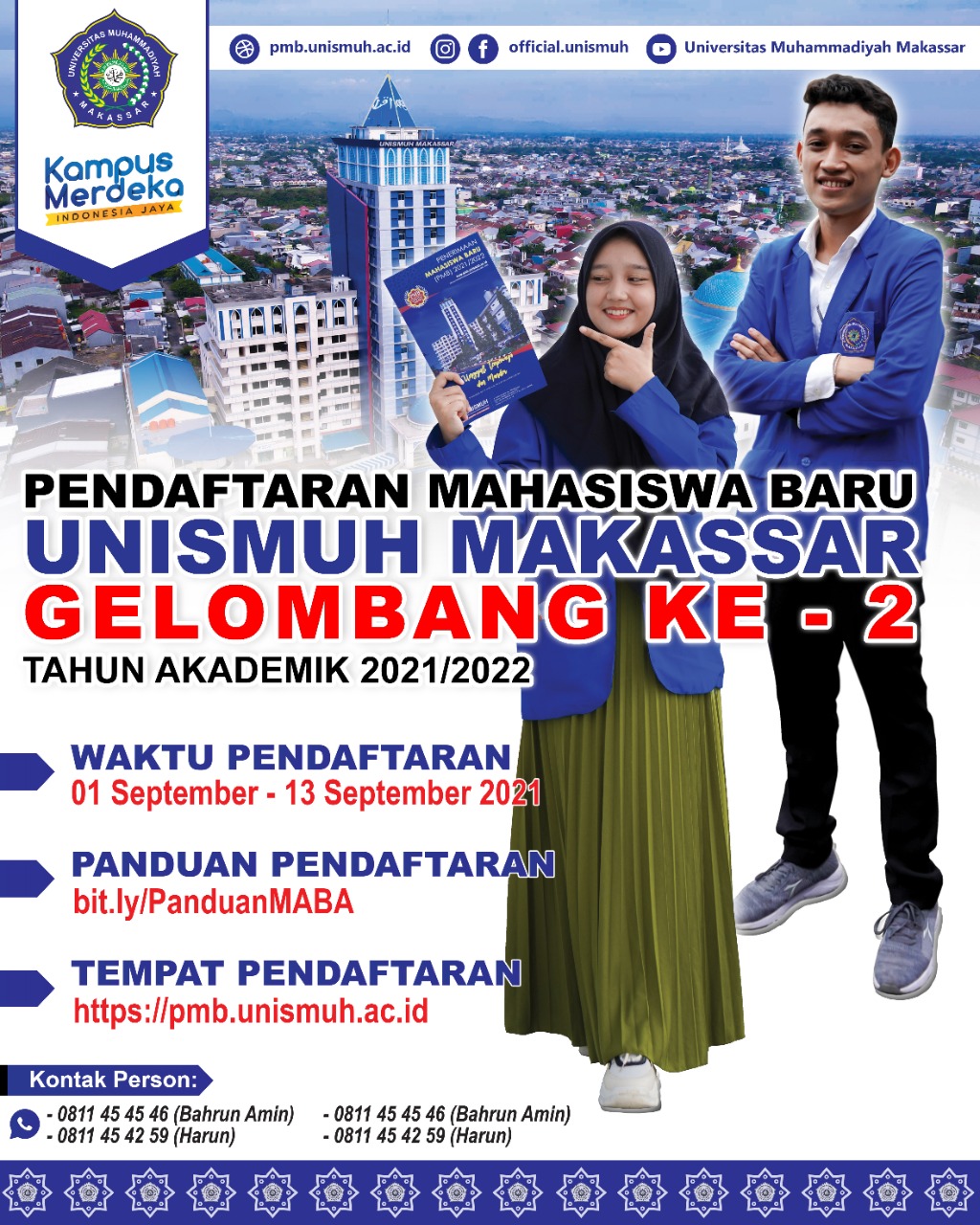 Informasi pendaftaran, selengkapnya dapat disimak melalui https://pmb.unismuh.ac.id/.