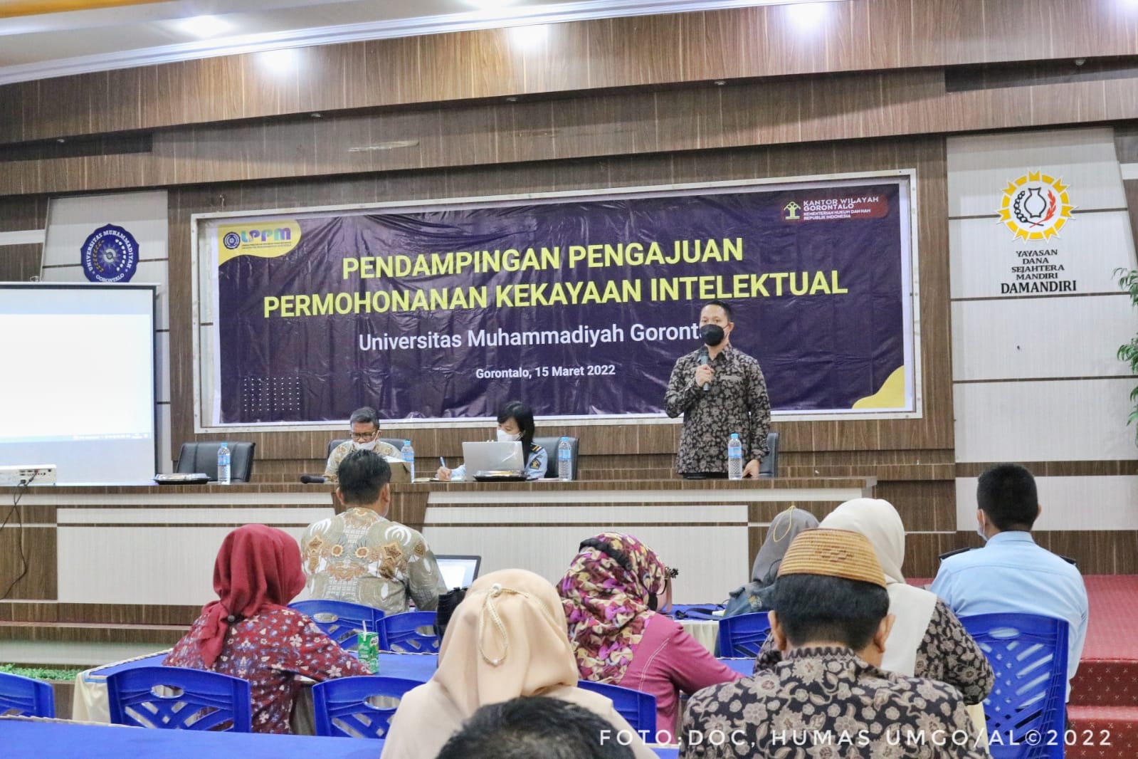 MataKita.co, Gorontalo – Lembaga Penelitian Dan Pengabdian Masyarakat (LPPM) Universitas Muhammadiyah Gorontalo (UMGO) menyelenggarakan kegiatan pendampingan pengajuan permohonan kekayaan Intelektual oleh Kanwil Kementerian Hukum dan HAM Gorontalo yang berlangsung di Gedung Prof. Haryono Suyono LP2M Selasa (15/03/2022).