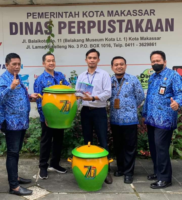 MataKita.co, Makassar – PT. Penerbit Erlangga Cabang Makassar yang diwakili Supervisor Non Buku Pelajaran, Maulana menyerahkan bantuan 2 buah Tempat sampah outdoor untuk Dinas Perpustakaan Makassar. Bantuan diterima langsung oleh Sekretaris Dinas Perpustakaan, A. Mappanyukki didampingi Kepala Bidang Layanan, Alih Media dan TI, H. Andi Ismail dan Pustakawan, Tulus Wulan Juni, Selasa (17/05) di Kantor Dinas Perpustakaan Kota Makassar, Jl. Balaikota No. 11 Makassar.