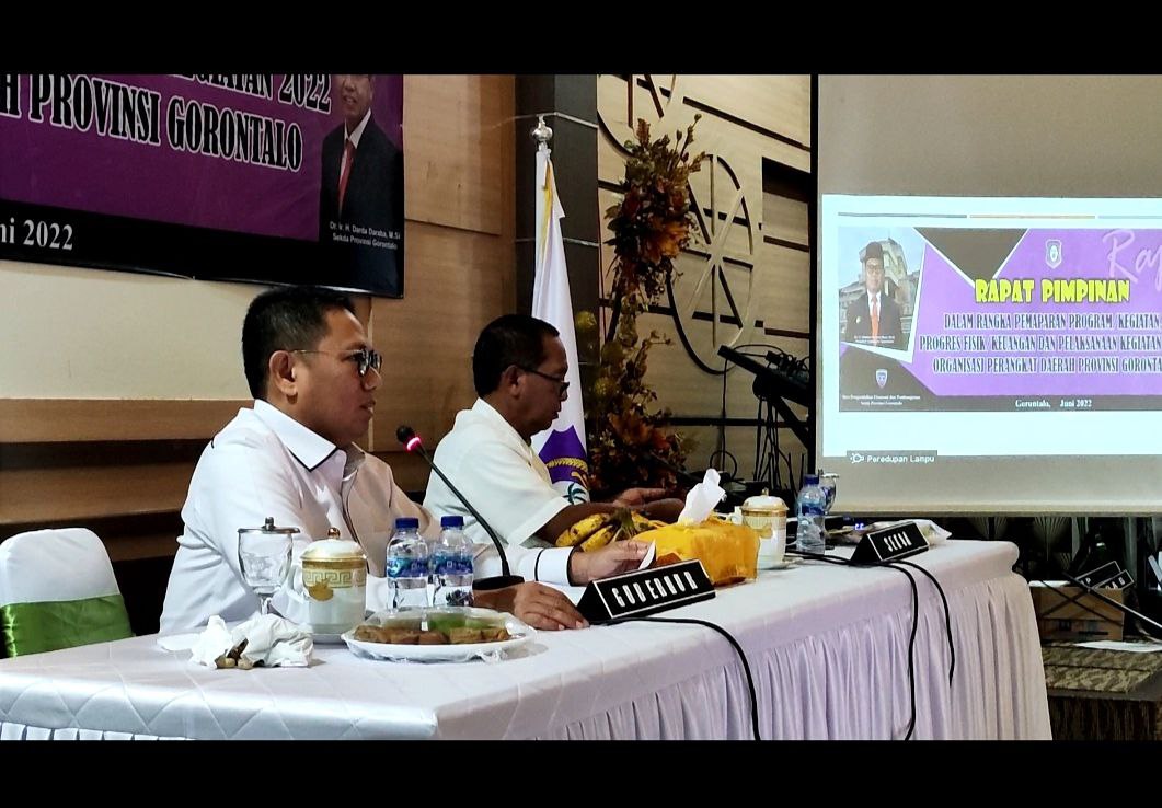 Matakita.co, Gorontalo – 15 Organisasi Perangkat Daerah (OPD) prioritas dilingkup Pemerintah Provinsi Gorontalo menjadi perhatian Penjabat Gubernur Hamka Hendra Noer pada Rapat bersama Pimpinan OPD terkait realisasi fisik dan anggaran, Minggu (05/06/2022) yang berlangsung di Aula Rujab Wakil Gubernur.