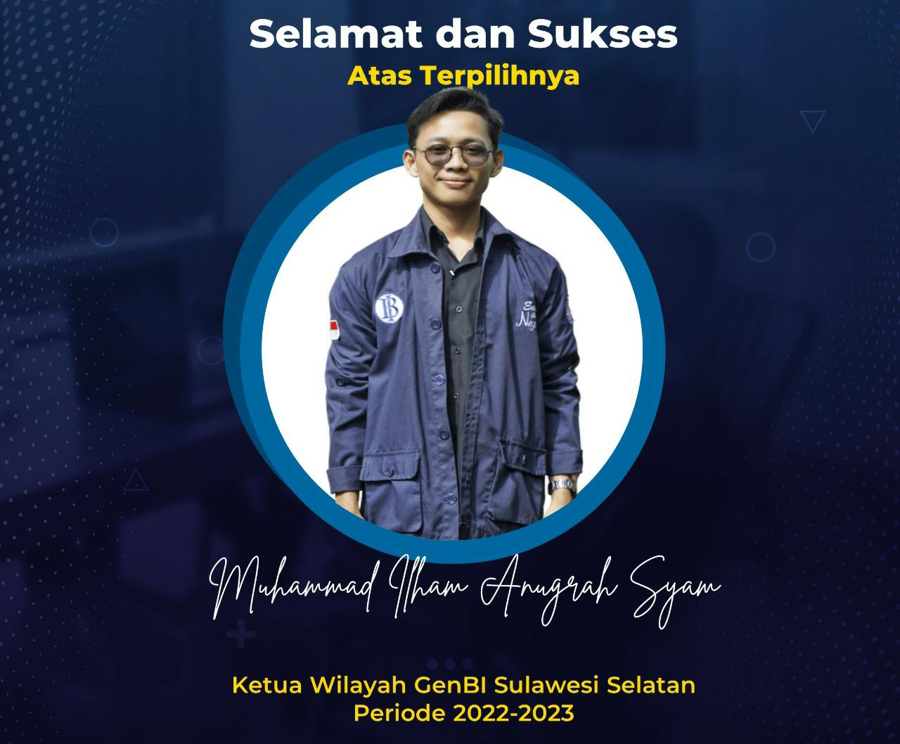 Muhammad Ilham Anugrah Syam dalam visinya memaparkan bahwa menjadikan GenBI Sulawesi Selatan sebagai komunitas terdepan diIndonesia dengan berbasis kekompakan, Kekeluargaan dan perubahan.