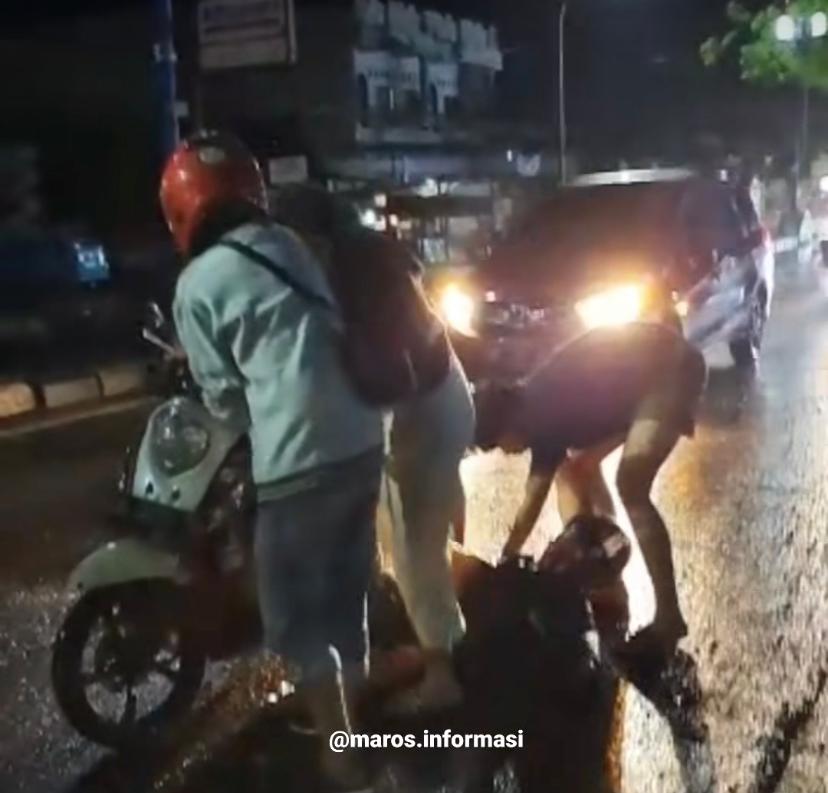 Hal itu menyebabkan sedikitnya belasan pengguna jalan terjatuh akibat tidak adanya penanda jalan atau KUS Orange yang bisa dilihat para pengendara.