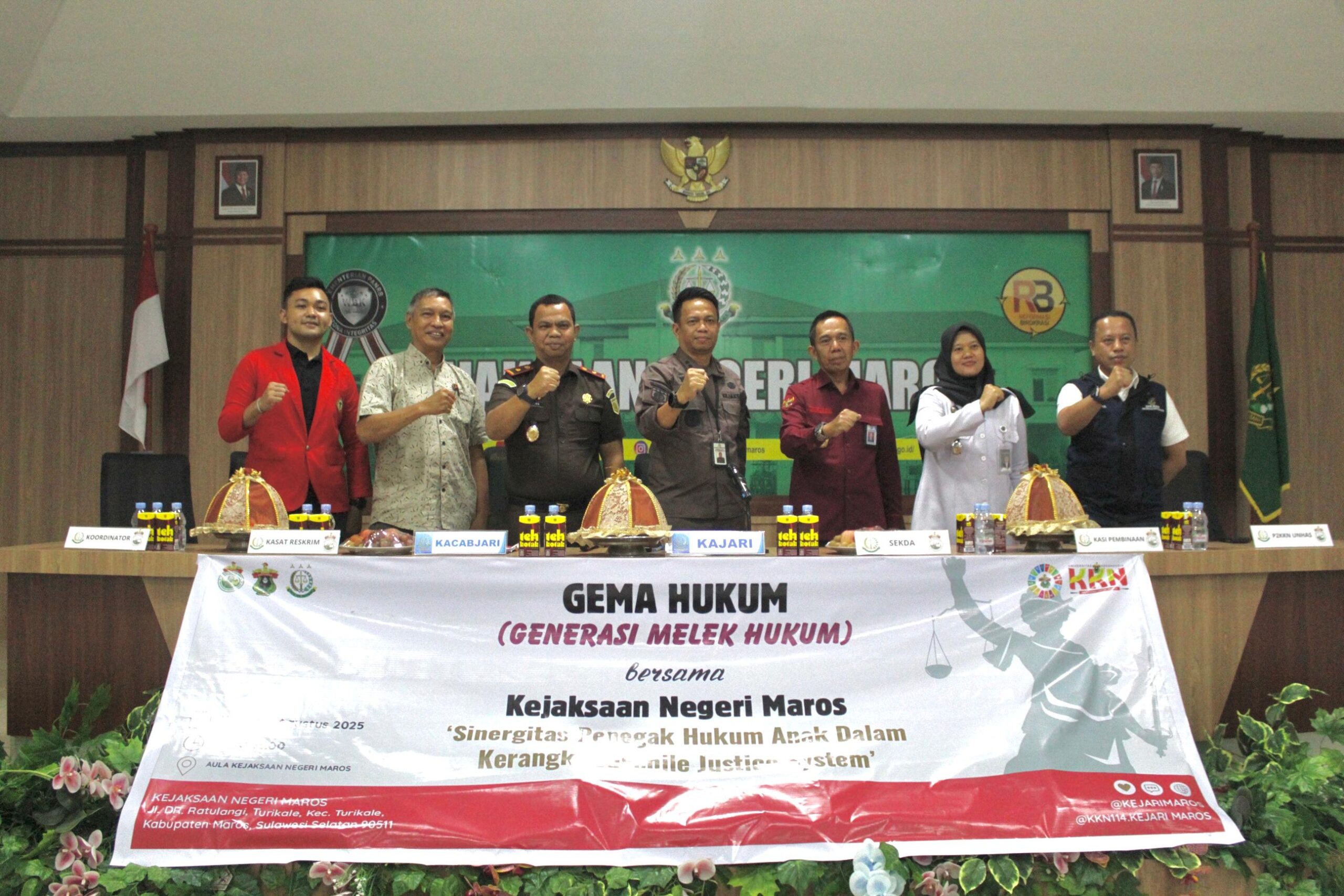 MataKita.co, Maros- Kejaksaan Negeri Maros bersama mahasiswa KKN-T Hukum Universitas Hasanuddin sukses menyelenggarakan acara edukatif bertajuk “Generasi Melek (Gema) Hukum 2025” pada 7 Agustus 2025. Dengan tema “Sinergitas Penegak Hukum Anak dalam Kerangka Juvenile Justice System,” acara ini bertujuan memberikan pemahaman mendalam tentang sistem peradilan pidana anak kepada 83 siswa dari delapan sekolah di Kabupaten Maros.