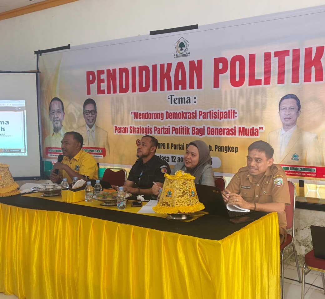 Sementara itu, Ketua DPD II Partai Golkar Pangkep, Andi Ilham Zainuddin, menegaskan bahwa pendidikan politik merupakan agenda rutin yang dilaksanakan tiga hingga empat kali dalam setahun. Pendidikan politik penting untuk generasi penerus agar mampu mempersiapkan tata kelola pemerintahan.