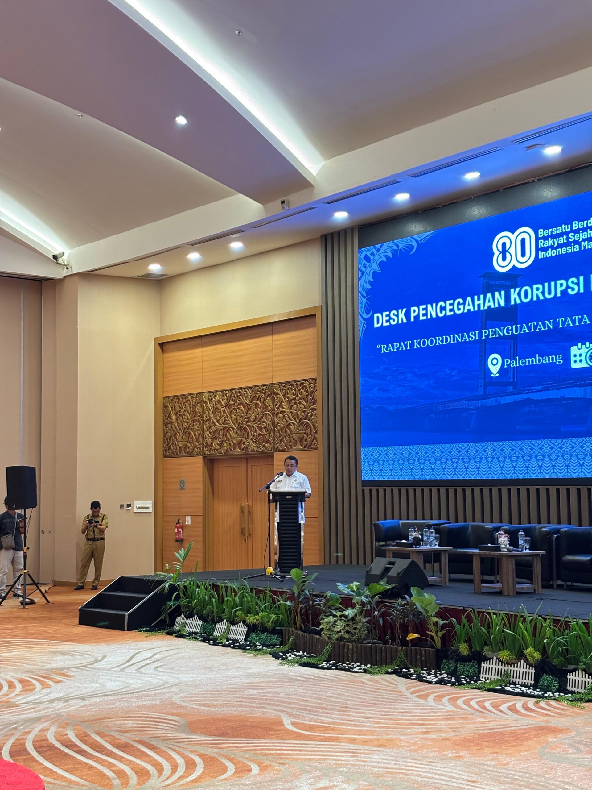 Matakita.co, Palembang. Koordinator I Jaksa Agung Muda Perdata dan Tata Usaha Negara Kejaksaan Agung, Bapak Ferry Tass, S.H., M.Hum., M.Si. menghadiri dan memberikan sambutan Pada Kegiatan Desk Pencegahan Korupsi dan Penguatan Tata Kelola, Peningkatan Kapasitas dan Penguatan Tata Kelola BPD untuk Provinsi Sumatera Selatan, Jambi, Bengkulu, Kep. Babel dan Lampung. Acara tersebut digelar pada Senin, 8 September 2025 di Palembang.