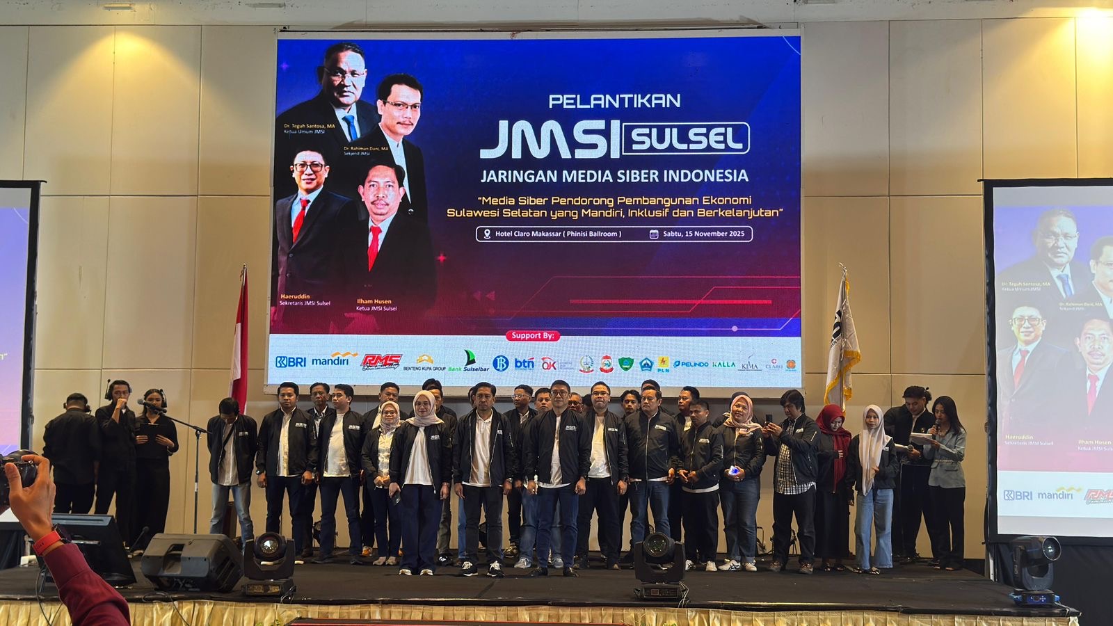 MataKita.co, Makassar – Pengurus Daerah Jaringan Media Siber Indonesia (JMSI) Sulawesi Selatan (Sulsel) resmi dilantik pada acara yang berlangsung di Ballroom Phinis, Hotel Claro Makassar, Sabtu (15/11/2025).
