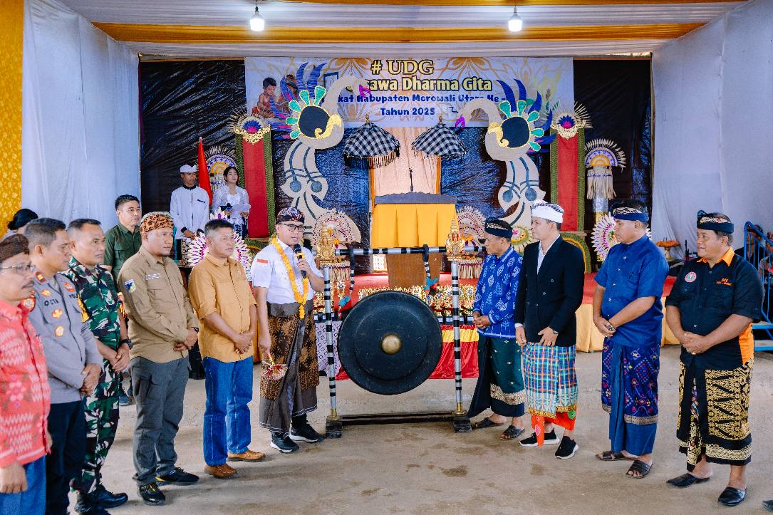 Matakita.co, Morut — Utsawa Dharma Gita (UDG) ke-7 tingkat Kabupaten Morowali Utara resmi dibuka Bupati Morut, Dr. dr. Delis Julkarson Hehi, MARS, melalui penabuhan gong di Desa Panca Makmur, Kecamatan Soyojaya, Sabtu (22/11/2025). Kegiatan tahunan umat Hindu ini menjadi ruang penting bagi pelestarian tradisi dan pembinaan generasi muda di daerah setempat.