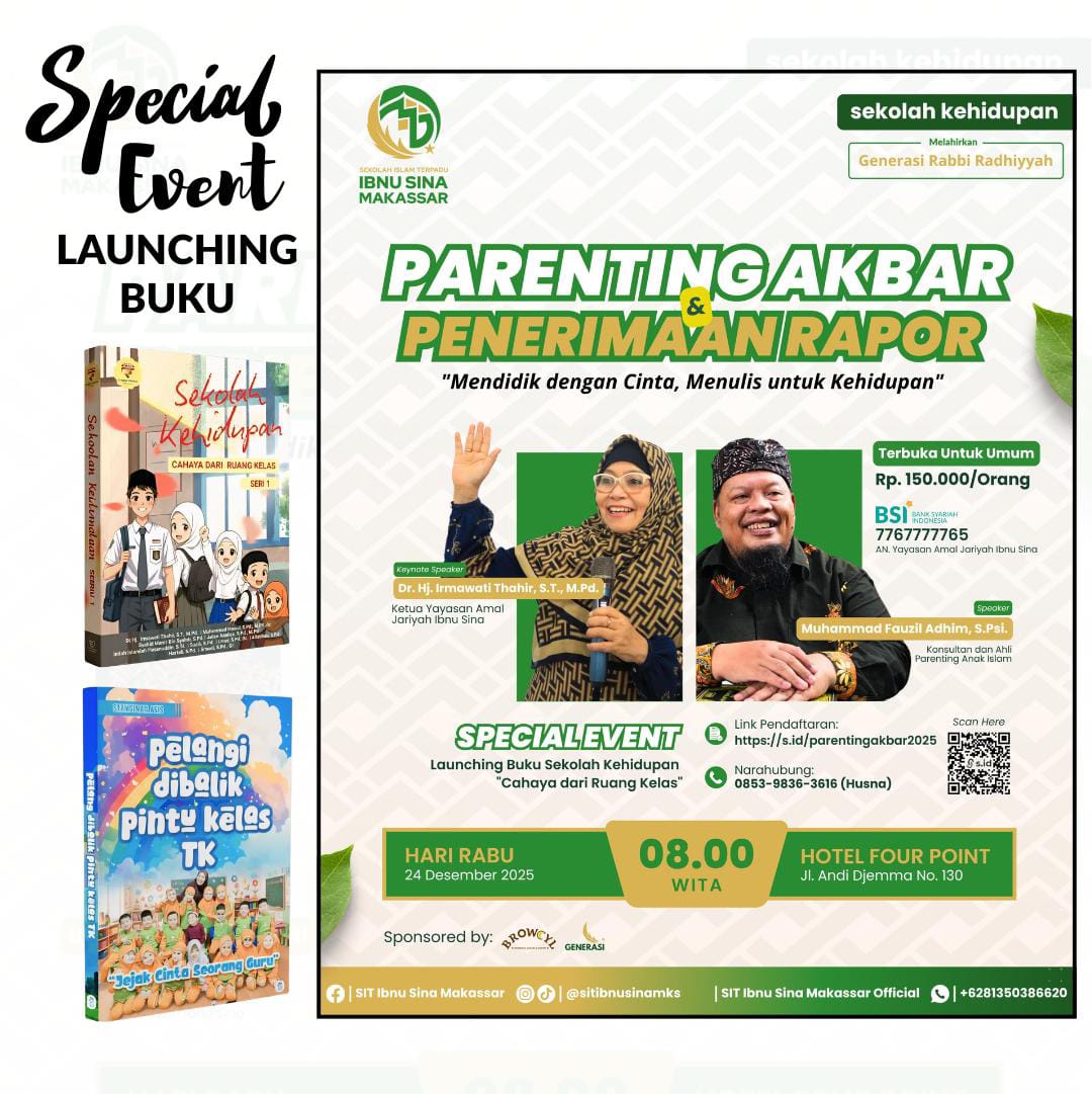 COMING SOON Menjalin Cinta, Mengukir Makna: Parenting Akbar, Penerimaan Rapor & Launching Buku SIT Ibnu Sina Makassar
