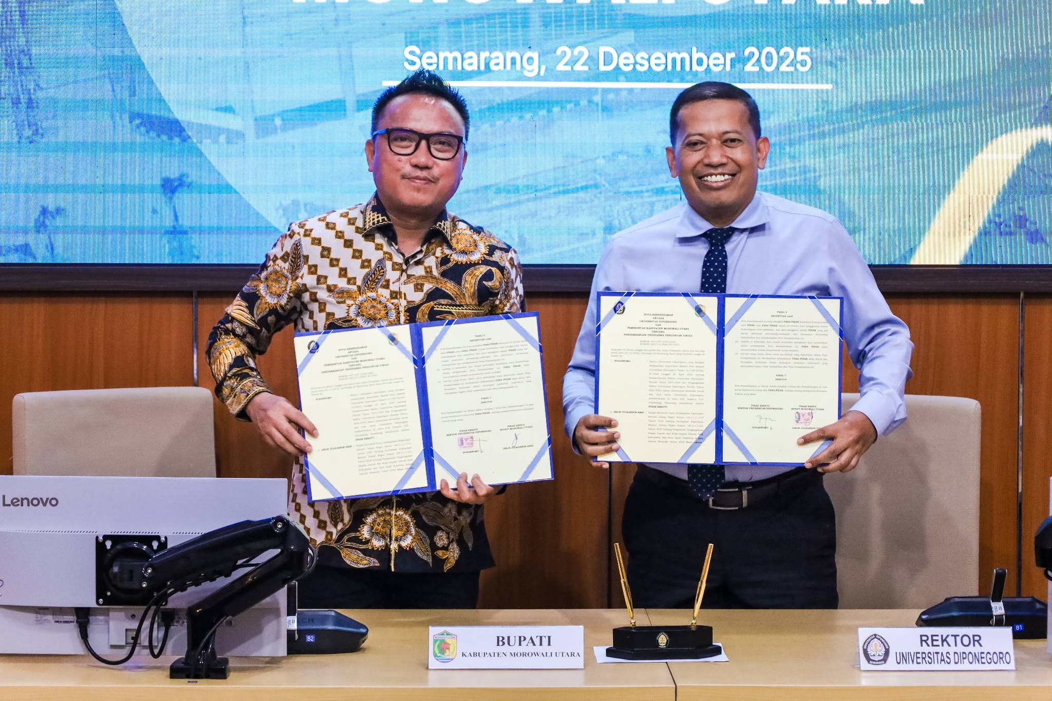 “Kami sangat mengapresiasi sambutan dan komitmen Universitas Diponegoro. Kerja sama ini bukan sekadar seremoni, melainkan fondasi penting untuk menghadirkan solusi konkret berbasis riset, khususnya dalam penanganan persampahan, penyediaan air bersih, serta persoalan strategis lainnya di Morowali Utara,” ujar Bupati.