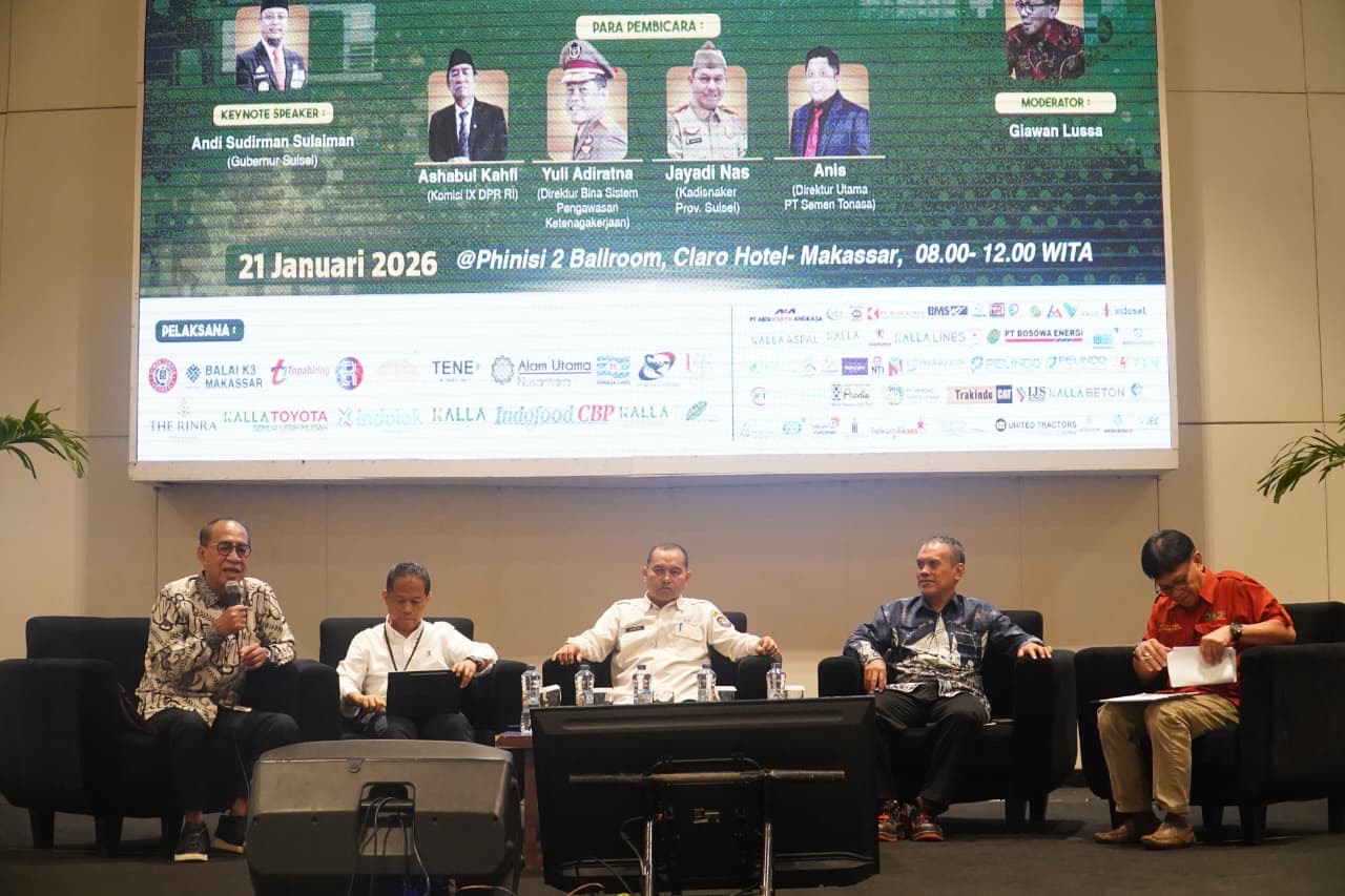 MataKita.co, Pangkep — PT Semen Tonasa menegaskan komitmennya dalam mendukung peningkatan daya saing Usaha Mikro, Kecil, dan Menengah (UMKM) di Sulawesi Selatan melalui penerapan standar Keselamatan dan Kesehatan Kerja (K3) sebagai fondasi keberlanjutan usaha.Komitmen tersebut disampaikan dalam Seminar Nasional K3 bertajuk “Revitalisasi Peran UMKM melalui Penerapan Standar K3 dalam Rangka Peningkatan Daya Saing Sulawesi Selatan” yang digelar pada Rabu (21/1/2026) di Pinisi Ballroom Hotel Claro, Makassar.